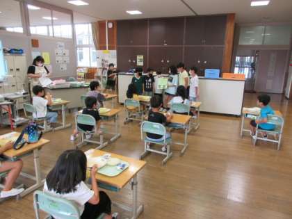 国語科では、1年生の読み聞かせに向けて話合いをしました。その話合いを通して、読み聞かせの本を精選するだけでなく、読み方や読み聞かせ会の進め方について決めることができました。
