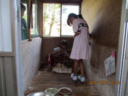 休み時間にうさぎのお世話をしていますが、すっかり慣れた手つきで、声をかけ合いながら手際よくお世話をしています。糞取りや鍵の開け閉めなども全部自分たちでしっかりとできるようになりました。うさぎをだっこできるのが楽しみで、自分から進んでお世話をしに来る子もいます。もうすぐ、1年生さんにうさぎのお世話を引き継ぐので、しっかりと教えてあげられそうですね。