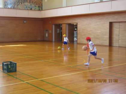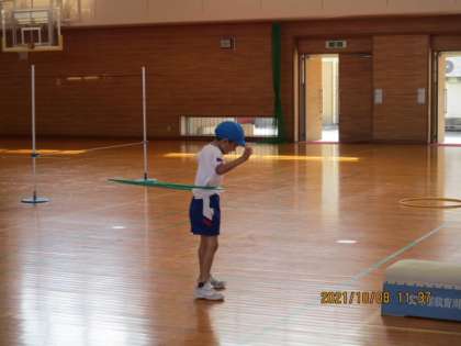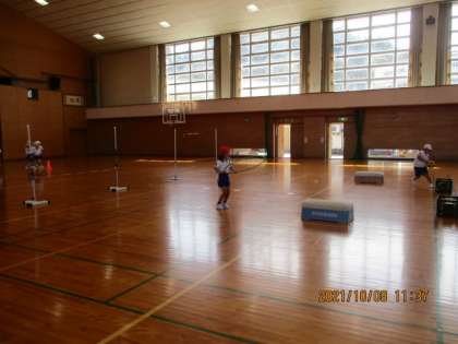 これまでの学習でいろいろな障害物を試し、リレーの途中にどんな物を置くか、子供たちとアイディアを出し合い、コースづくりをしてきました。話し合いしながらだんだん面白いコースになってきています。