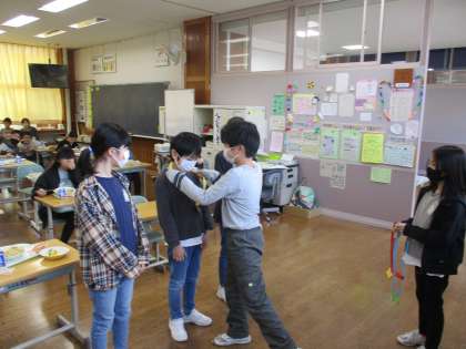 保健委員会の呼びかけに応え、コロナ感染予防のための「ピクトグラムコンテスト」に応募して第5学年の部で入賞した仲間です。この3人はもちろんのこと、新しい企画を考え、全校に呼びかけた保健委員会の仲間も立派でした!