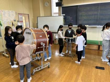 理科では音の学習をしました。音楽で使った楽器を理科の視点から実験すると、新たな発見がありました。子供たちが、「どうして反対側の面も震えてるんだろう?」や「音は空気を歪ませるのかな?」など、予想や考察をしながら学習をしていて嬉しかったです。