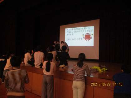 松組の子供たちの要望で、ハロウィンパーティーを行いました。会社でそれぞれ企画、準備をし、クイズや宝探し等の出し物をみんなで楽しみました。あちらこちらで、クロムブックを活用していることや、いつのまにそんな準備をしたのだろうと感心させられる場面がたくさんありました。