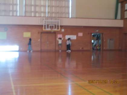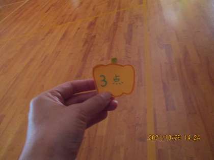 宝探しのゲームでは、体育館に隠されたカボチャを探し、得点を競い合いましたが、簡単には見つからず、マットや壁の張り物の裏など、あちこち探し回っている姿がありました。