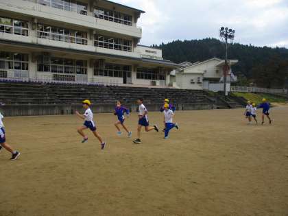 今年初めて、マラソンの学習を行った時の様子です。ジャンケンの結果で走る方向を変えたり、少人数のチームでペース走をしたりと、楽しくトレーニングをしました。マラソン大会に向けて走力を高めようと、どの子も頑張っていました。