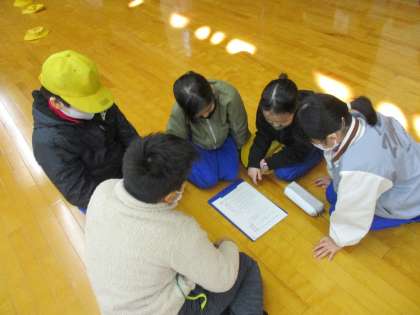 午前中は、「館内フォトオリエンテーリング」を行いました。写真を手がかりにして、管理棟内のポイントを時間内に探す活動です。館内の地図や写真をよく見て、声をかけ合いながら活動していました。