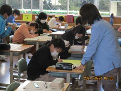 書写の時間に、ポスターやお知らせの文字の配列や大きさのバランスについて学び、自分たちの委員会のお知らせを練習して書きました。どれも、自分たちの委員会らしさを生かした素敵なお知らせに仕上がったので、学年のワークスペースに掲示しています。互いの工夫を参考にし、これからの委員会の活動でも生かしていってほしいと思います。
