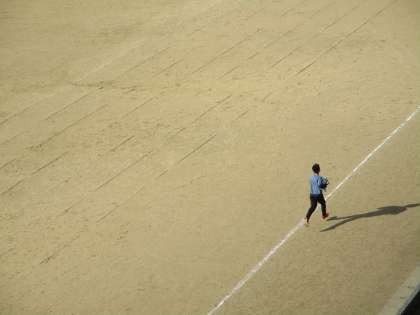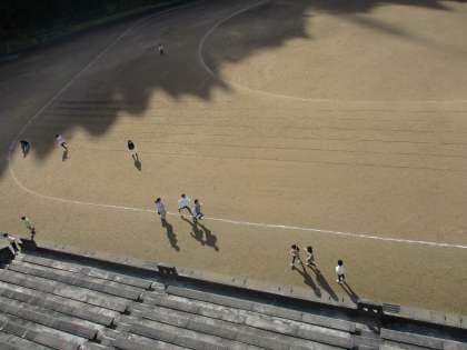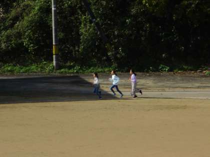 マラソン記録会の前日、1時間目に体育の学習で1km走ったにも関わらず、休み時間にまたトレーニングに励む姿がありました。仲間が走っているのを着替えている最中に見付け、練習に参加しようと急ぐあまり、着替え袋を持ったままの子もいて、そのやる気にも驚きました。