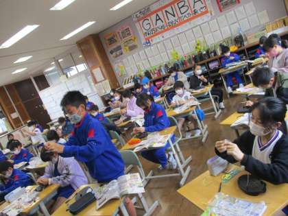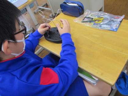 新しい図画工作科の学習を始めました。自由自在に曲げたりねじったりできる素材の面白さや、何度でもつくり直せる楽しさを味わいながら、どの子も夢中になってつくっていました。
