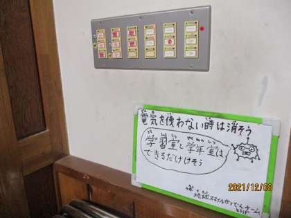 校内を調査したところ、学習室や学年室前の電灯がつきっぱなしのことがよくあることが分かりました。子供たちは、どの電灯を消したらよいのか意識できていないのではないかと考えました。