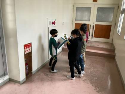 今日の社会科では、学校にある防災設備を調べました。子供たちは、学校にはたくさんの防災設備があることを体感しました。