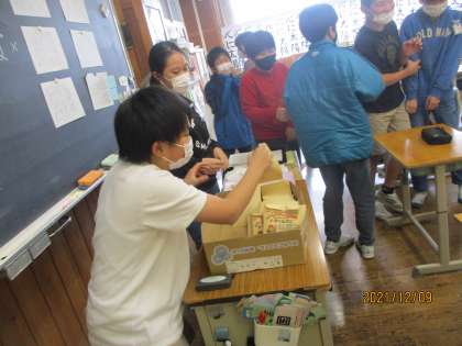 松組では、卒業用文集のためのボールペン選びをジャンケンで行いました。5色のボールペンを封筒に入れて、ドキドキワクワク感を演出。
