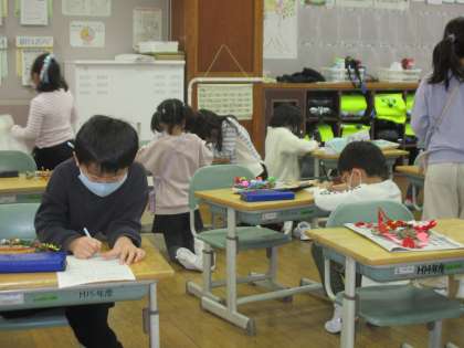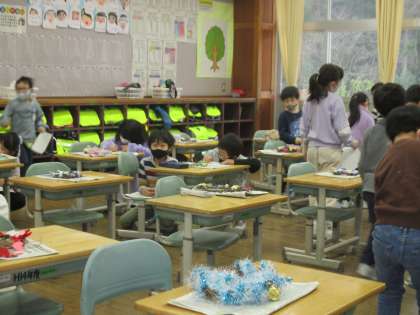 保護者の皆様、子供たちの材料集めにご協力いただき、本当にありがとうございました。22日、23日中に、リースを持ち帰りました。