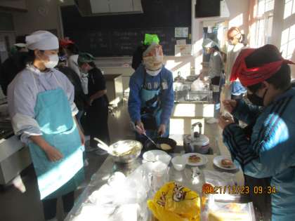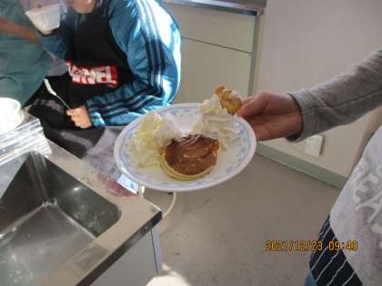 それぞれの班で、ホットケーキをつくり、デコレーションをしました。
