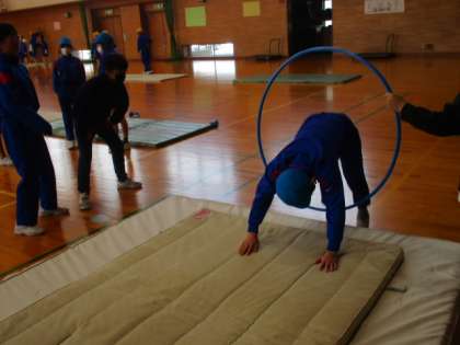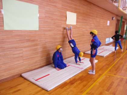 5年生の学習発表会のテーマは、「みんなでGANBA!〜マット運動・縄跳び運動〜」です。みんなで話し合ったり練習に励んだり、頑張っています。
