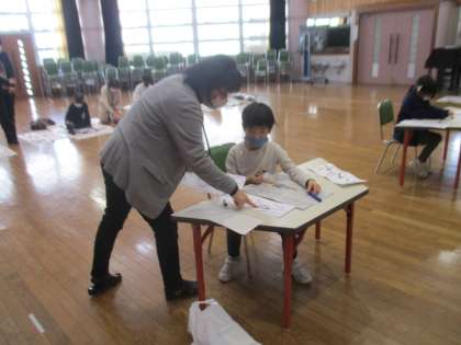 書き初め県大会に出品する皆さんの、1回目の揮毫を行いました。