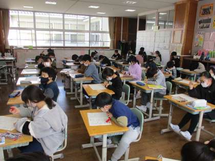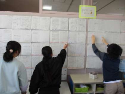 今日は自学コンテストを行いました。いつもは、ファミリーで見せ合ったり頑張りを紹介したりするのですが、今回はじっくりと仲間のノートのコピーを見て良さを見付け、コメントする活動を行いました。子供たちは、すこやか週間が終わっても頑張ろうという意欲を高めていました。
