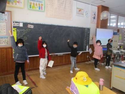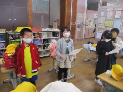 学習発表会の動画撮影に向け、はじめの言葉とおわりの言葉の練習に取り組んでいます。大きな声で、はきはきと言うことを心がけて練習しています。