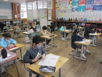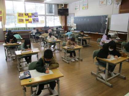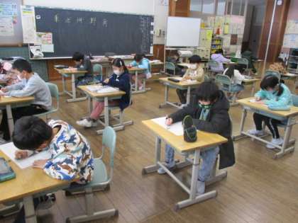 2月28日(月)に今年度最後の漢字検定がありました。とめ、はね、はらい、字の形等、今まで学習したことをすべて出し切って、一画一画丁寧に字を書く姿がとても素敵でした。