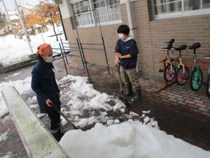 奉仕活動では、竜の子ロードの周りのたくさんの雪も6年生のおかげで随分減りました。