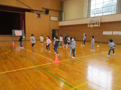 「間をとったドッジボール」、「なわとび対決」、「ボールあて鬼」、「玉入れ」の4種類です。どれも、集会係が、近づかない、直接さわらないことを考えて学級会に提案してくれたアイディアです。もちろん、体育館横のドアは開けるよね、と子供たちに念を押されました。