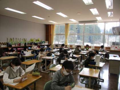 学力調査を行いました。5年生での学習の成果を発揮しようと、どの子も集中して取り組んでいました。