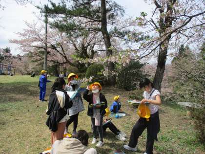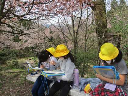 今日は、楽しみしていた城ヶ山公園へ桜の観察に行ってきました。始めにじっくりと桜の花や花の付き方を見ました。今まで何気なく見ていた桜ですが、よく見ることで新たに気付いたことがたくさんあったようです。