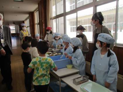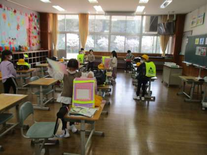 朝の準備や学習活動、給食の準備など、6年生にも手伝ってもらいながら、一つ一つ身に付けています。