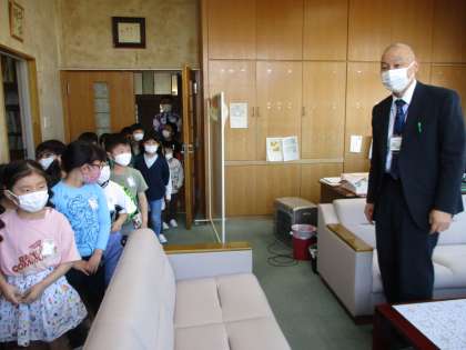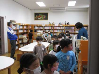学校探検で、校長室や図書室を見せてもらいました。上学年の教室でお兄ちゃん、お姉ちゃん、知っている上級生にうれしそうに手を振っていました。