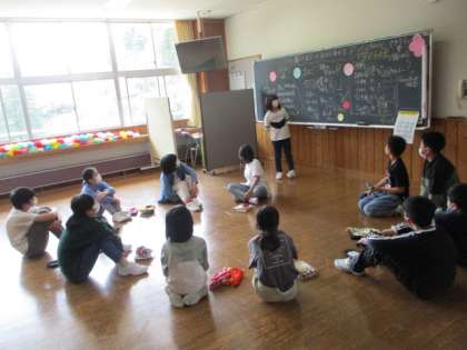6年生は、1年生さんの朝の身支度や給食準備のサポートを続けています。活動後には、学級やグループで活動を振り返り、よりよい関わりを目指して仲間と考え合っています。