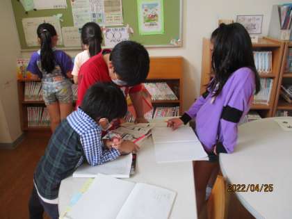 今日の国語科では、学校の図書室にはどんなジャンルの本があるのか詳しく見ました。「生き物」「世界の地域」「工作」など棚が分けられていて、似た内容の本が分類されて並べられていることに気付きました。「先生のお探し本」も、友達と協力しながら見つけることができました。