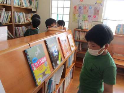 今日の国語科では、学校の図書室にはどんなジャンルの本があるのか詳しく見ました。「生き物」「世界の地域」「工作」など棚が分けられていて、似た内容の本が分類されて並べられていることに気付きました。「先生のお探し本」も、友達と協力しながら見つけることができました。