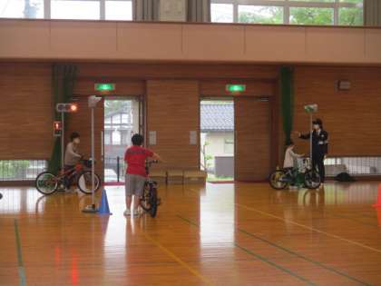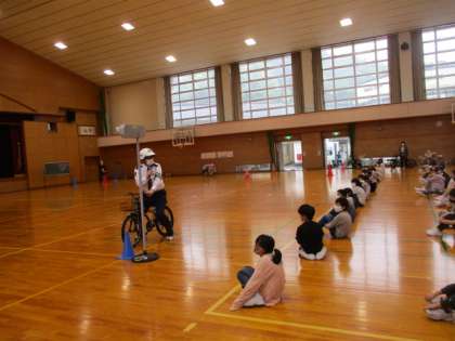 今日は雨天ということで体育館で交通安全教室を行いました。警察署の方からは、「交通安全について“知っている”だけでなく、“できる”ようになってほしい」というお話をお聞きしました。自分を守るための乗り方を一つ一つ実際に行うのは難しいということがよくわかりましたね。繰り返し今日の話を思い出して、習慣にしていきましょう。
