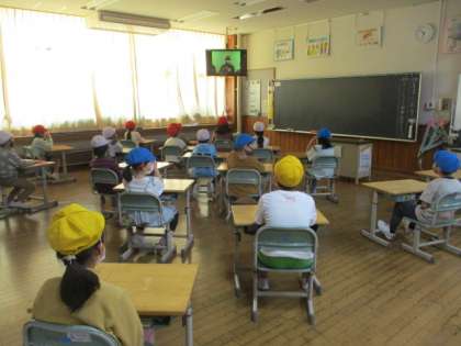 テレビ放送での結団式に参加しました。子供たちは「6年生が時間をかけて準備してくれたんだと思う」と話していました。