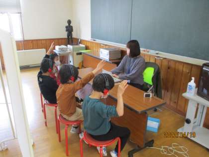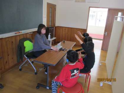 聴力検査を行いました。子供たちは、耳を澄ませて、真剣に検査をしていました。廊下で待っている姿も立派でした。