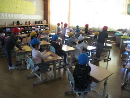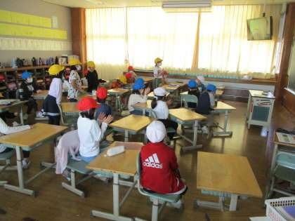 6年生の掛け声に合わせて、大きな声でエールの練習をしていました。 やる気満々の2年生です。