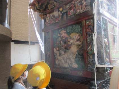 東町の皆さんのご厚意で、公民館の2階から曳山の中を覗くことができました。子供たちは間近で見る彫り物や飾りに圧倒されていました。本当にありがとうございました。