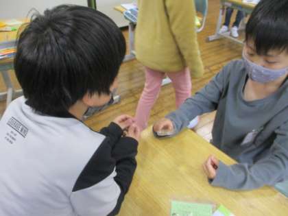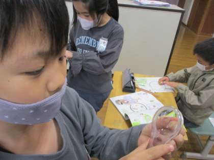 4つの種の中から、好きな種を選んで観察しました。「中がどうなっているか気になる」という子がいたので、割ってみると意外なことになっていてみんなじっくり観察していました。「割ったものでもちゃんと芽が出るのかな」と言う子もいたので、試してみましょうね。