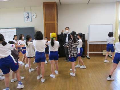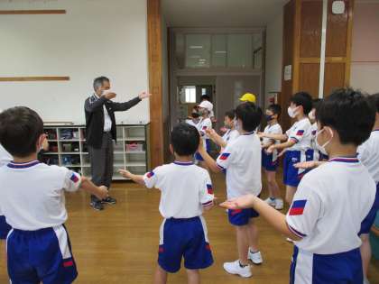 運動会では、4年生から、希望者がおわらを踊ります。そこで今週から朝来た人から練習をしています。今朝は、お上手な上手な先生に来ていただいて練習しました。