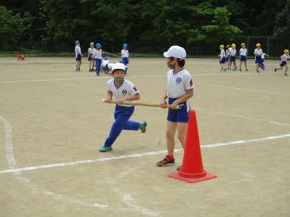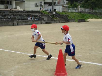 今日もグラウンドで「台風の目」を練習しました。コーンの回り方をどのペアも間違えずにできました。内側の人があまり動かないというコツもつかんできました。