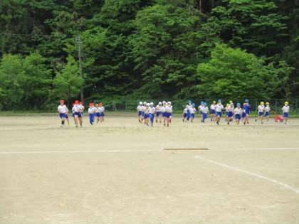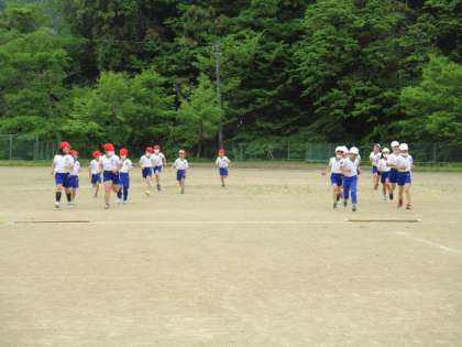 学年種目の入場、退場練習もしました。横とそろえてかけ足すること、間を空けて並ぶことをこれからも練習していきます。