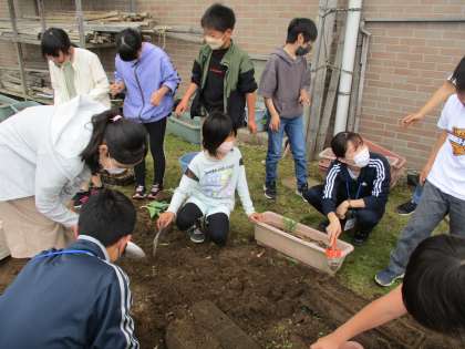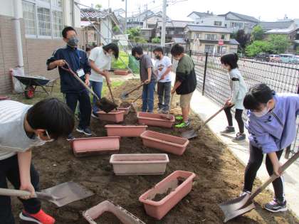 球根をとった後、花の苗を植えるためにプランターに土を入れました。牛糞や油かす等の肥料を混ぜて、プランターに入れました。苗を植える準備は整いました。苗が届くのが楽しみです。