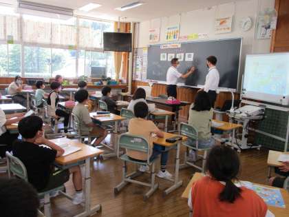 4年生 外国語活動 公開日 2022/05/18 更新日 2022/05/18 4年生 毎週水曜日は、外国語活動の学習があります。外国語の表現だけでなく、かまくらや雪だるま等の絵からも、日本と外国の違いに気付いていました。