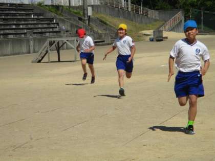 運動会に向けて、100メートル走の練習をしました。とても暑い中でしたが、スタートダッシュを意識し、自分のベストを出せるようにがんばりました。運動会当日が楽しみですね。