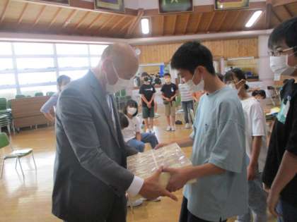 富山市税務局の方から自分たちの生活と税のつながりについて学びました。子供たちは、税金が安心・安全な生活を営むために必要不可欠なものであることを再確認していました。学習の最後には1億円の束を持ってみて、お金の重みを実感していました。