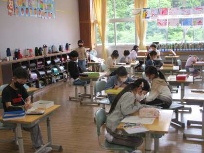今日の理科では、かいこの観察をしました。前よりも頭の黒い部分がはっきりしてきたり、体全体にさまざまな模様が出てきたりしたことも分かりました。虫が苦手な子にも、かいこの体の様子や、動く様子を伝わるように説明している子がいました。