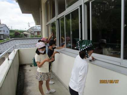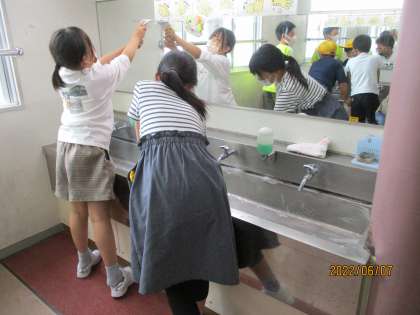 今週は清掃重点週間です。今日は、普段の掃除を「たつ1」の時間に、「たつ2」の時間には気になるところを掃除しました。窓拭きをしたり、清掃用具入れの下や洗面所を念入りに掃除したりしました。みんな熱心に取り組んでいました。