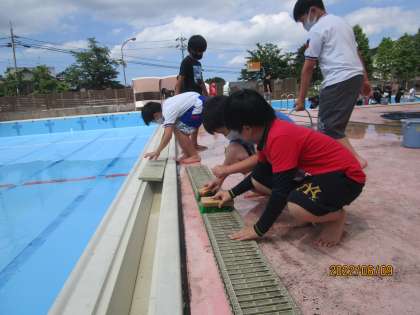 「みんなのためにプールをきれいにしよう」をめあてに取り組みました。