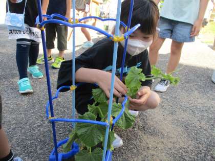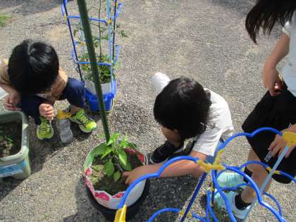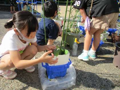 植え付ける時期の早い野菜は、花が咲いたり、実がなったり、またその数がどんどん増えています。
