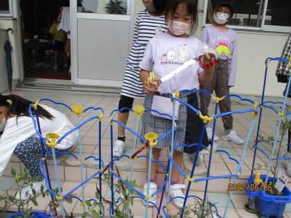 アブラムシや虫よけに、カラーテープを持ってきました。