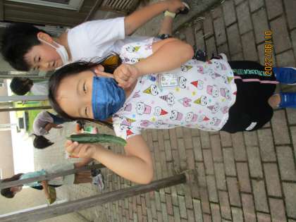 まちにまった野菜の収穫です。 家に持ち帰って食べるそうです!